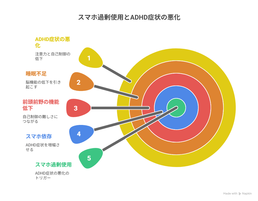 スマホ過剰使用がADHD症状を悪化させるメカニズム:注意力と自己制御の低下